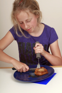 Dann noch ein scharfes Messer und eine Rutschunterlage und schon wird das Steak bezwungen!