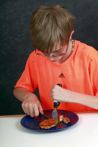 Rutschen das Fleisch auf dem Teller, der Teller auf dem Tisch und die Gabel in der Hand?